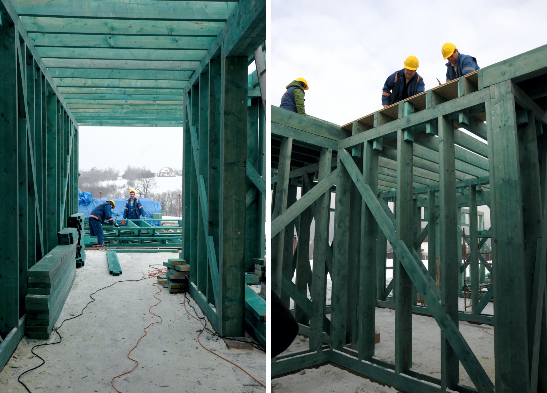 - nośne i usztywniające konstrukcje z drewna,
