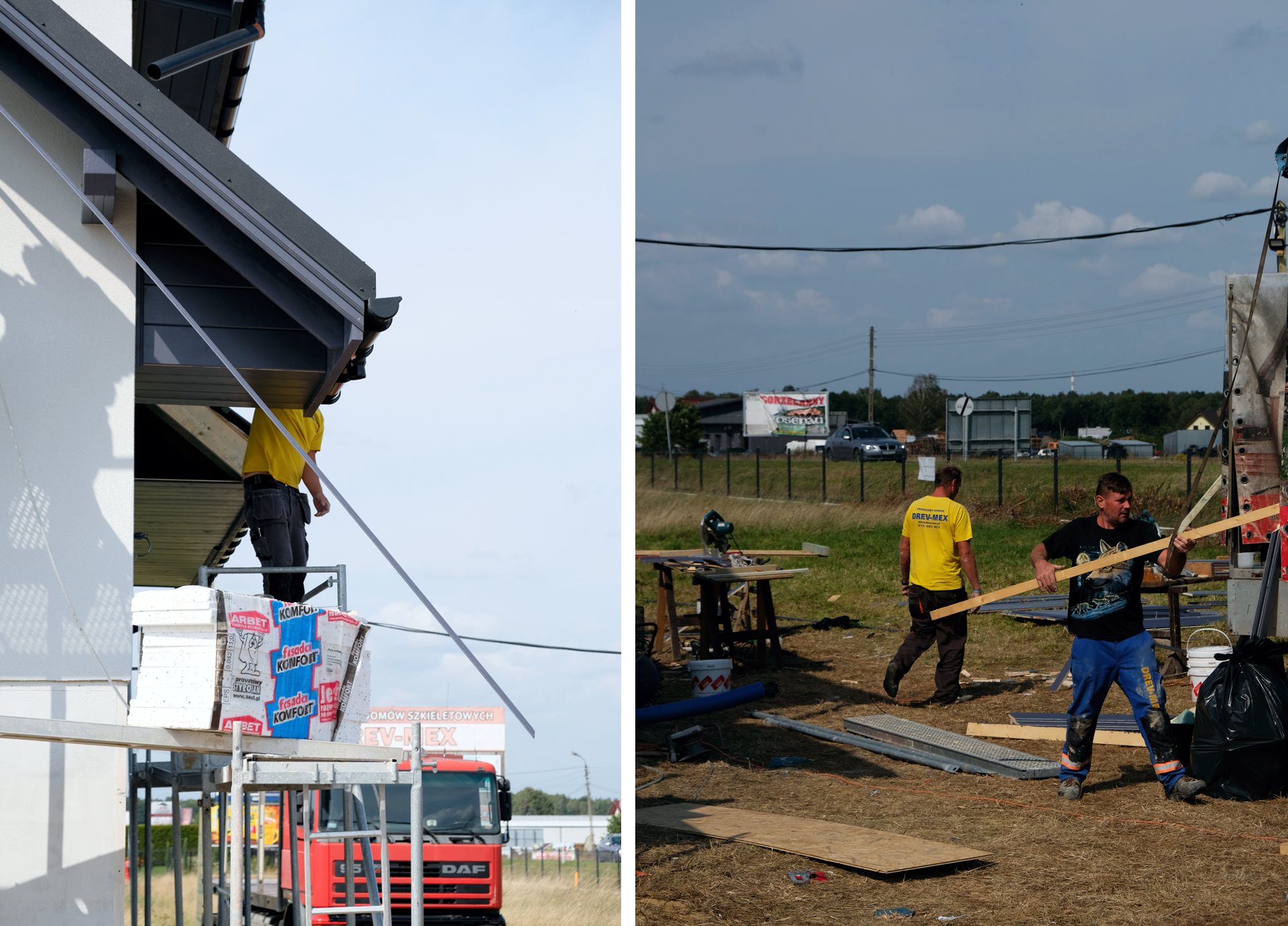 Dodatkowe prace i umiejętności, jakimi może się pochwalić Mariusz, to obróbka drewna, obsługa maszyn (frezarka, grubosciówka, maszyny pionowe, szlifierki taśmowe, i inne sprzęty stolarskie, segregacja, pakowanie materiałów, załadunek samochodowy, rozładunek na budowie. Następnie na placu budowy: stawianie konstrukcji, stawianie i obróbka kominów. Jest pomocnikiem przy obróbkach blacharskich i wykonywaniu pokrycia dachowego, wykonywaniu poszycia zewnętrznego budynku (obijanie domu płytą OSB, ocieplanie styropianem, wykonanie szpaletek, smarowanie klejem, nakładanie tynku) oraz przy montażu stolarki okiennej, drzwi zewnętrznych i wewnętrznych i montażu orynnowania, montażu parapetów zewnętrznych i wewnętrznych, montaż podłóg drewnianych i z płyt OSB, ocieplanie budynku wełną mineralną, stelażowanie pod płyty kartonowo - gipsowe oraz ich montaż, wykonywanie obróbek drewnianych na elewacji budynku.