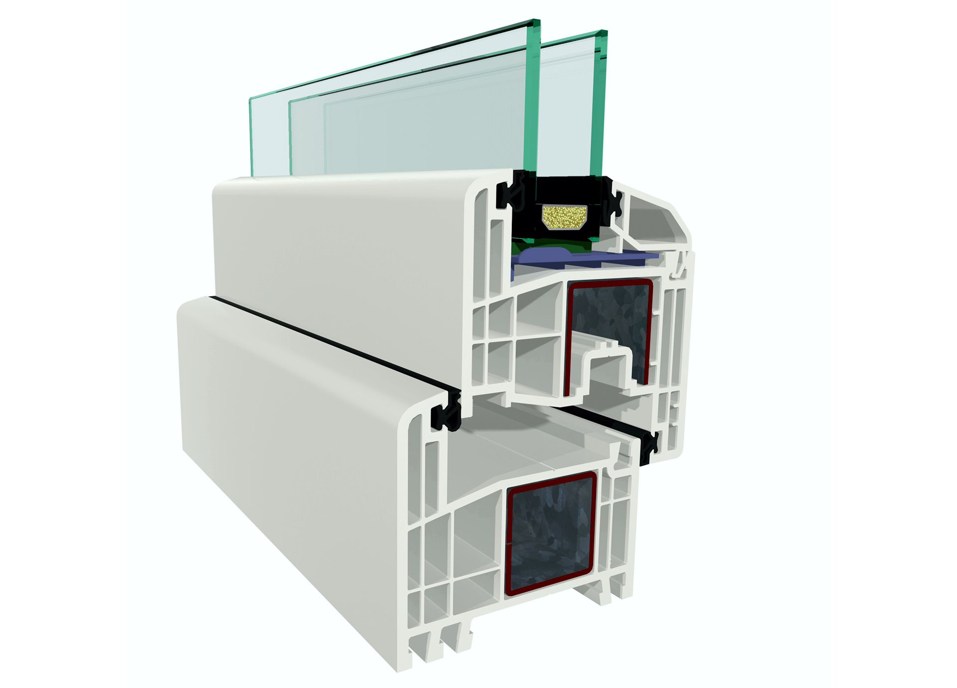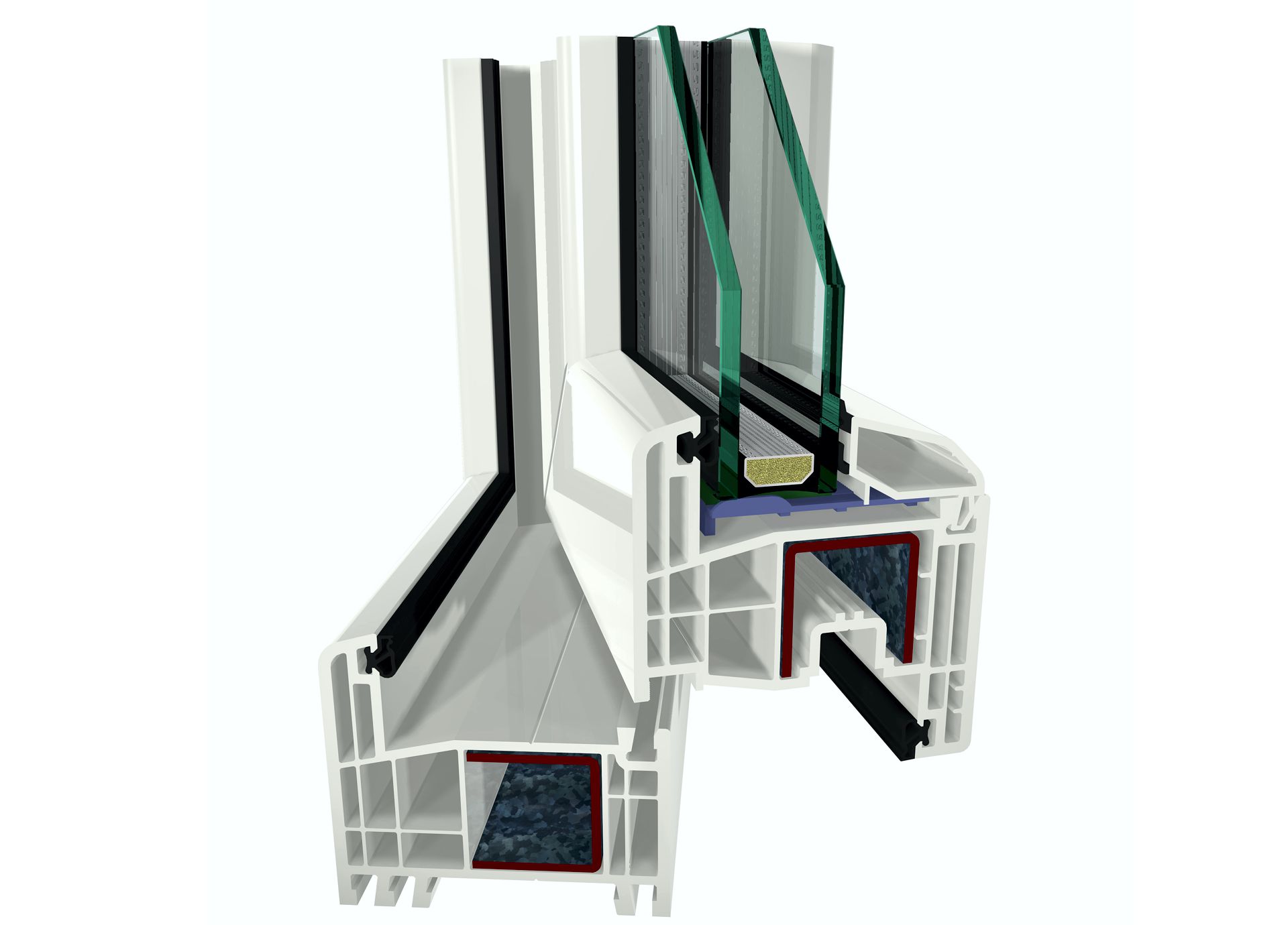 Profile dwukomorowe posiadają od zewnętrz komorę przednią do odprowadzania wody i drugą dużą komorę do umieszczenia stalowych wzmocnień. Dzięki komorze przedniej profil ten posiada lepszą izolację cieplną niż profil jednokomorowy (wartość U 1,8 do 2,1 W/m²K). Profile trójkomorowe posiadają komorę przednią także od strony wewnętrznej, co dodatkowo poprawia izolację cieplną. Wartość przenikania ciepła w profilach trójkomorowych kształtuje się w zakresie od 1,5 do 1,9 W/m²K. Głębokość tych konstrukcji wynosi przy tym ok. 60 mm.